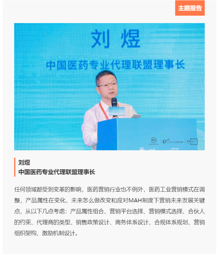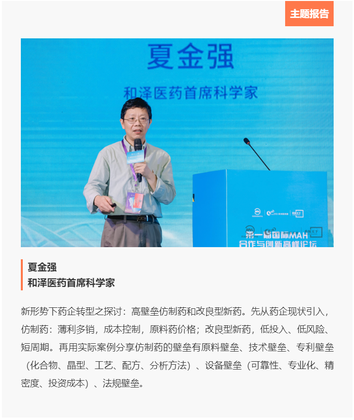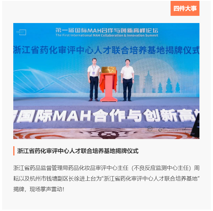 2022年7月22日-23日,由中国药学会、中华全国工商业联合会医药业商会、浙江省药品监督管理局、浙江省医疗保障研究会、杭州市经济和信息化局以及杭州市钱塘区人民政府支持,浙江省药品上市许可持有人转化平台主办的“第一届国际MAH合作与创新高峰论坛(简称“论坛”)”在杭州举行。